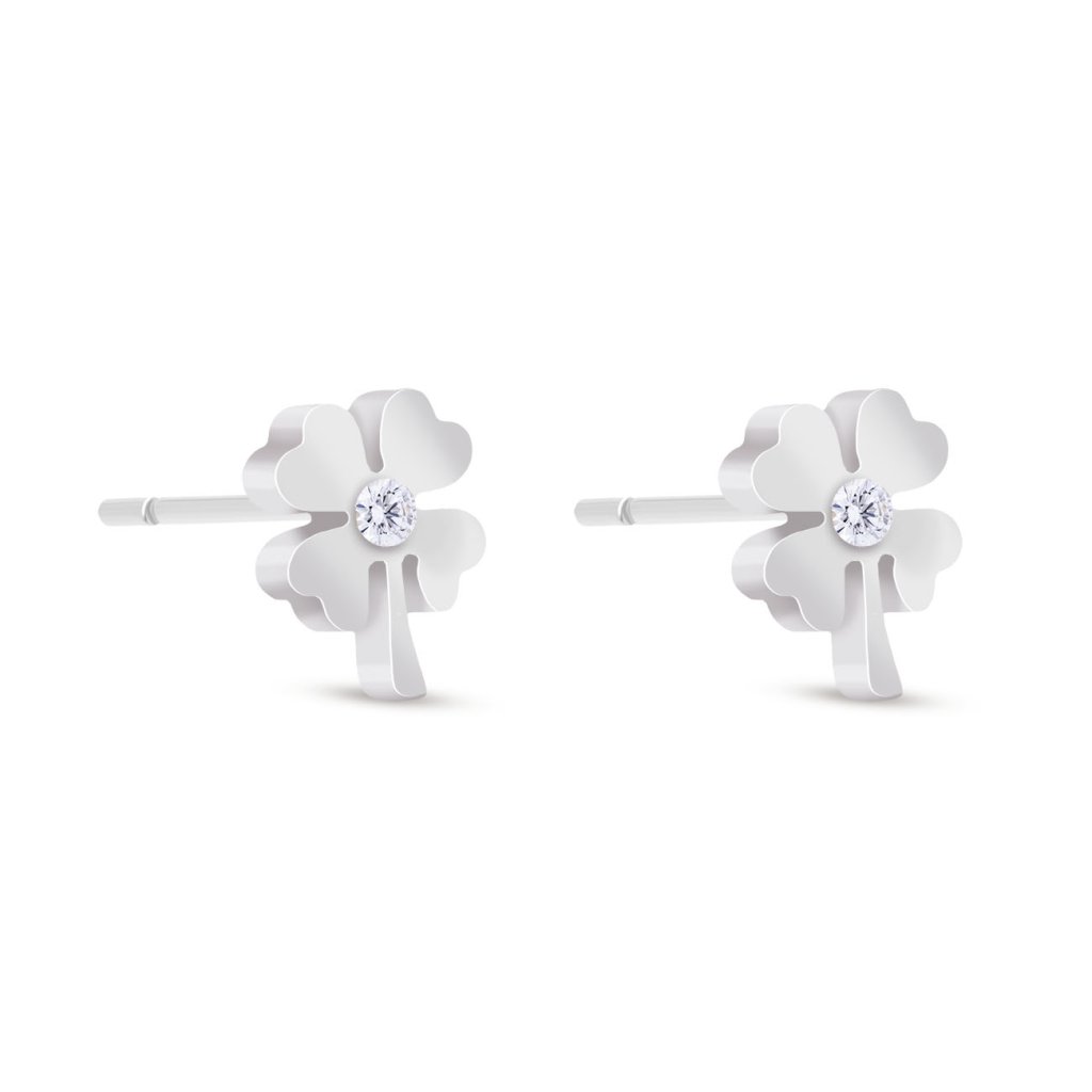 Jemné napichovacie náušnice v tvare štvorlístka s čírym kamienkom uprostred symbolizujú šťastie a eleganciu v jednom. Vďaka minimalistickému prevedeniu sú ideálne na každodenné nosenie aj ako decentný doplnok k formálnemu outfitu.