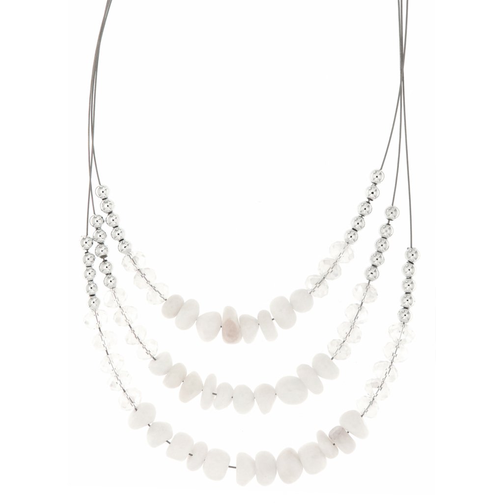 Lankový náhrdelník trojradový s umelými korálikmi a kameňmi - bielej farby 6000447-1