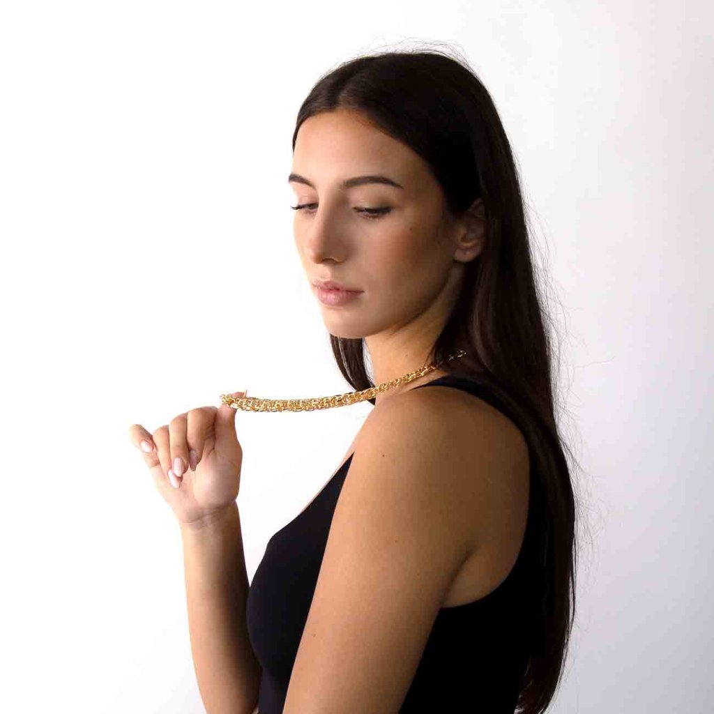• Typ retiazky: guľaté previazané články (rope/cable chain look)