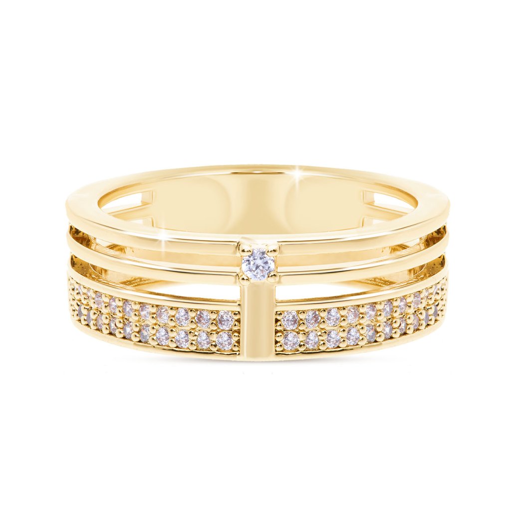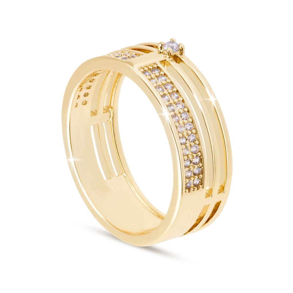 DUBAI 0417 Masívny pozlátený prsteň 14k so zirkónmi Ellami