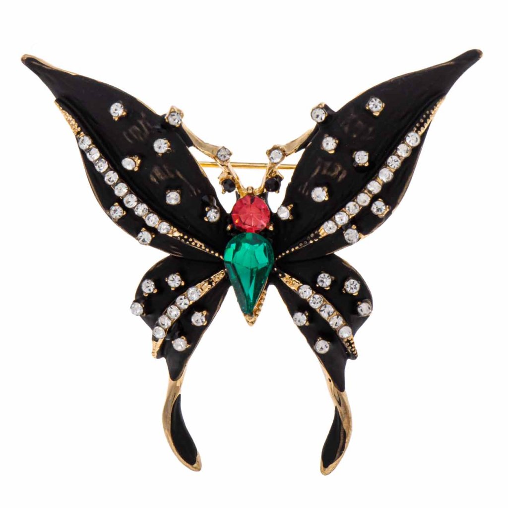 Motýlia brošňa čierna s farebnými zirkónmi 1778-3