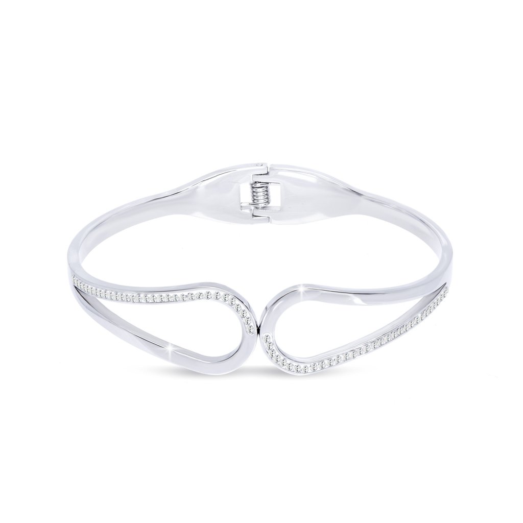 Náramok na ruku z chirurgickej ocele - pevný, kvapky ozdobené pásmi zirkónov 2002111