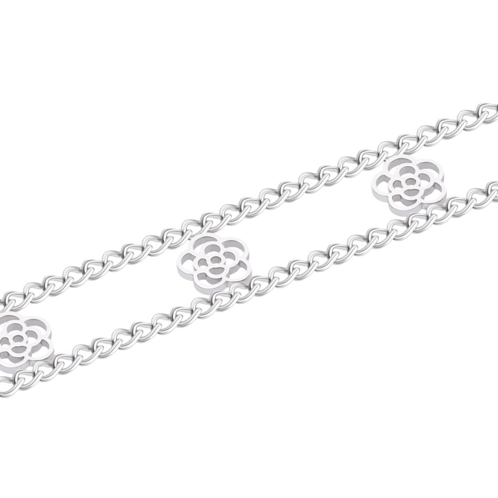 Náramok z chirurgickej ocele, dvojradový s kvetinami 2002293-1