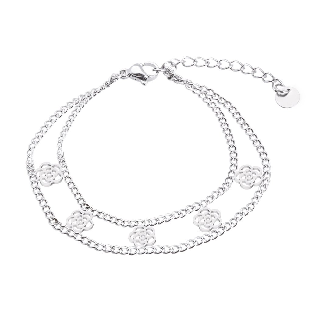 - Náramok z chirurgickej ocele, dvojradový s kvetmi.