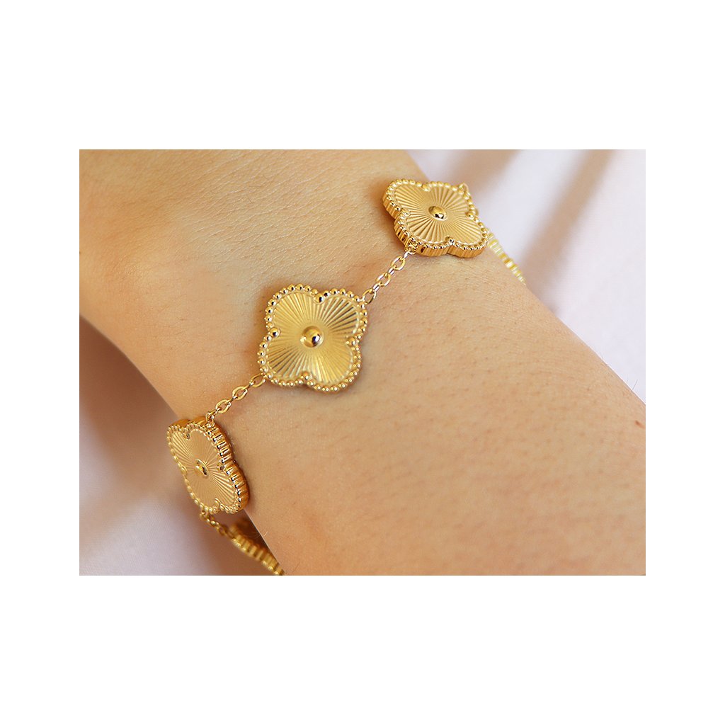 - Náramok z chirurgickej ocele, pozlátený 14k, masívny s kvetmi.