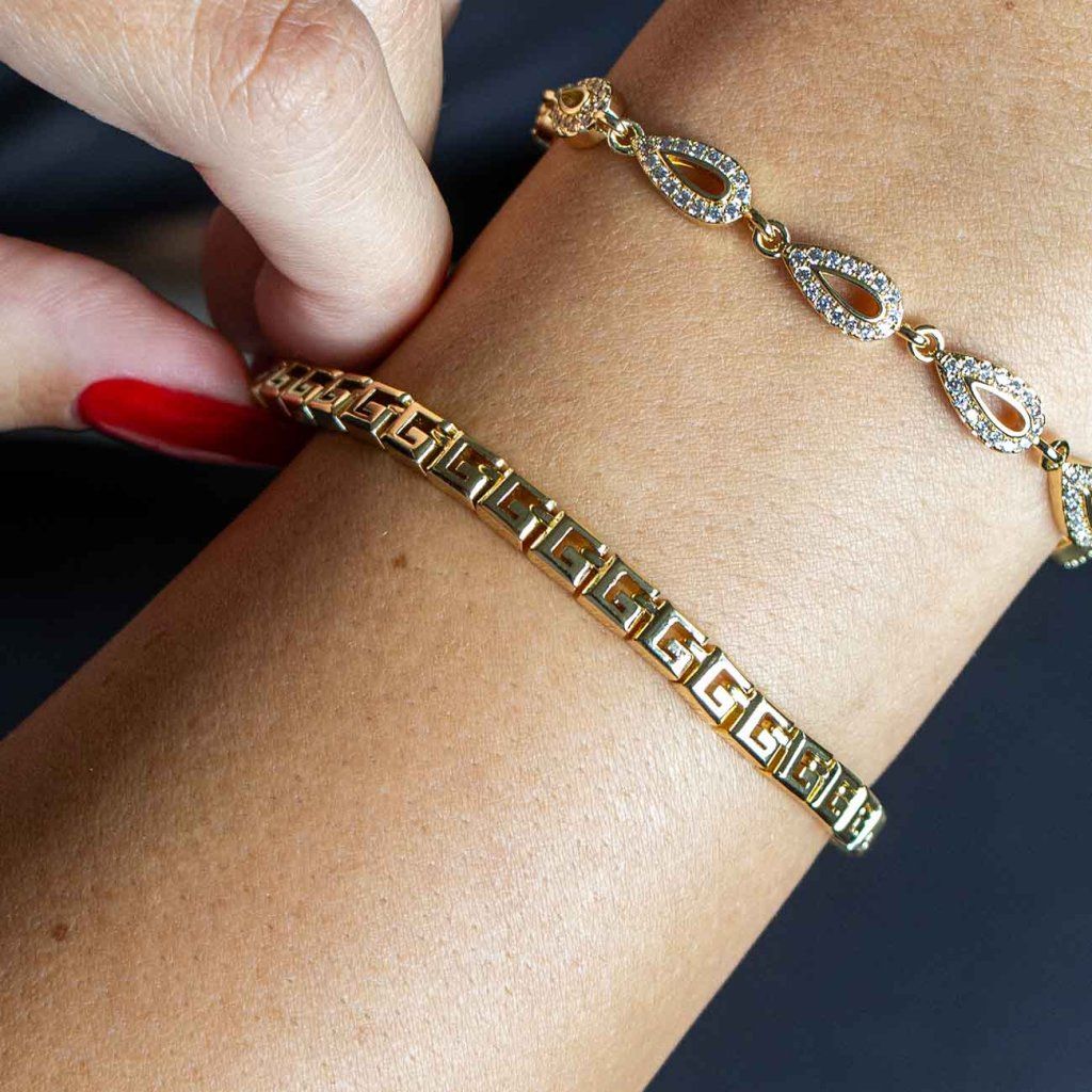 Tento náramok zaujme svojim precíznym geometrickým vzorom, ktorý pôsobí moderne a zároveň nadčasovo. Hladký, žiarivý povrch podčiarkuje jeho elegantný charakter a dodáva mu luxusný vzhľad. Perfektný doplnok na každodenné nosenie aj formálne príležitosti.