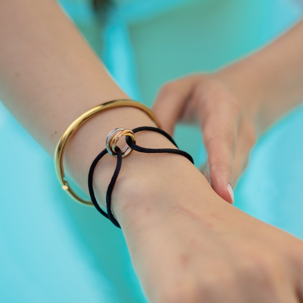 Náramok z chirurgickej ocele, čierna šnúrka s krúžkami 2002684-1