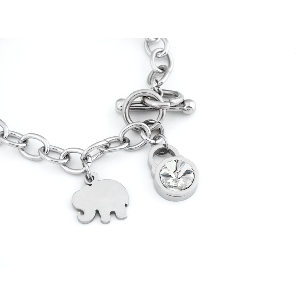 Náramok z chirurgickej ocele so slonom a kryštálom 1712