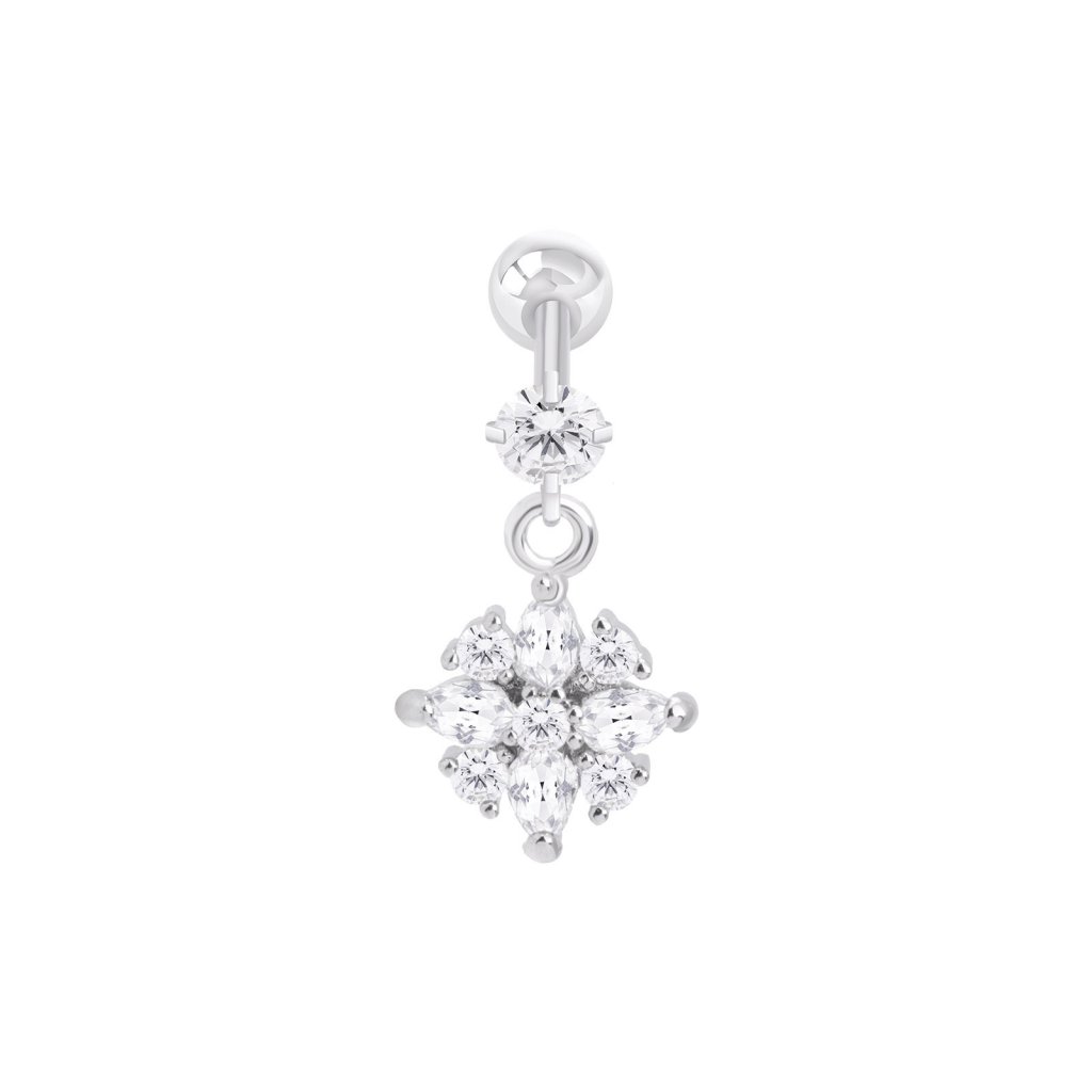 Náušnice na jedno ucho z chirurgickej ocele, visiaci kvet so zirkónmi 9001648-2