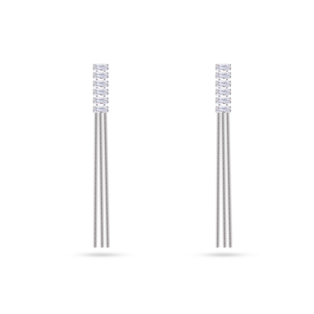 Strapcové náušnice s detailne brúsenými kamienkami a tromi jemnými retiazkami vytvárajú efekt pohybu a lesku pri každom kroku. Skvele doplnia slávnostný outfit aj minimalistický look, ktorému dodajú šmrnc.