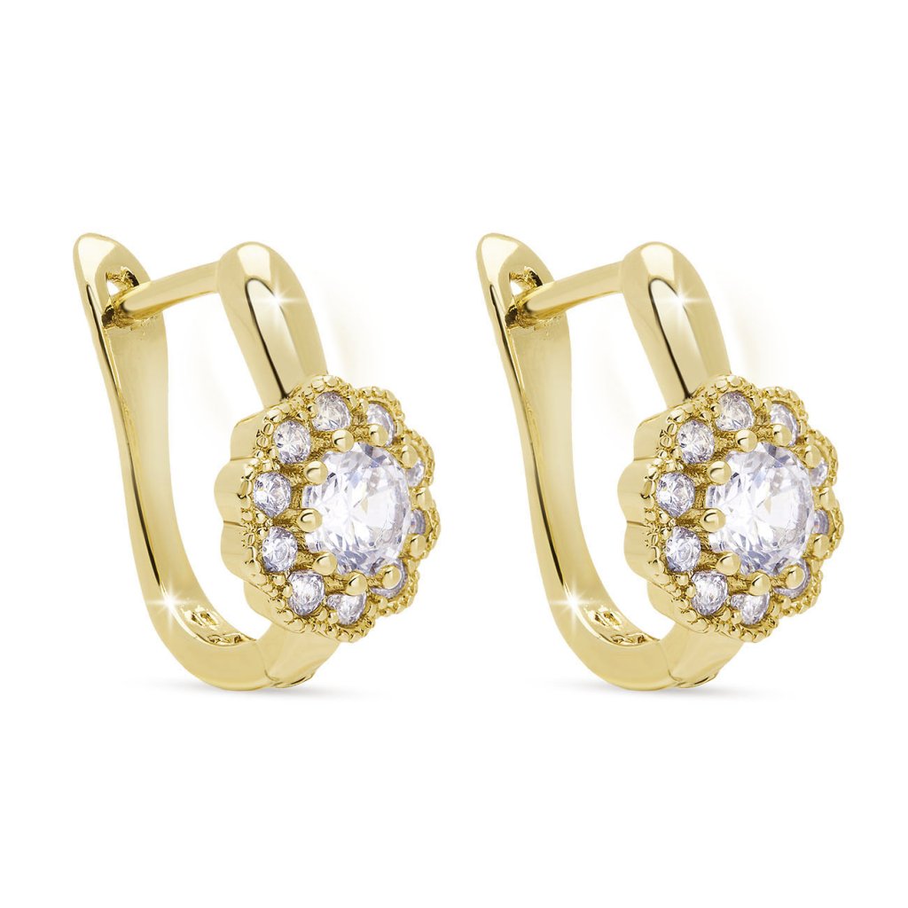 Elegantné náušnice v tvare kvetiny s centrálnym čírym kameňom a jemnými zirkónmi po obvode. Luxusný dizajn pripomínajúci klenotnícky štýl dodá vášmu outfitu iskru aj noblesu. Vhodné na slávnostné udalosti aj každodenné nosenie.