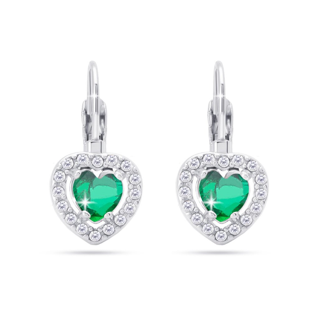 VERONA 2820-2 Náušnice jemné srdce so zelenými zirkónmi