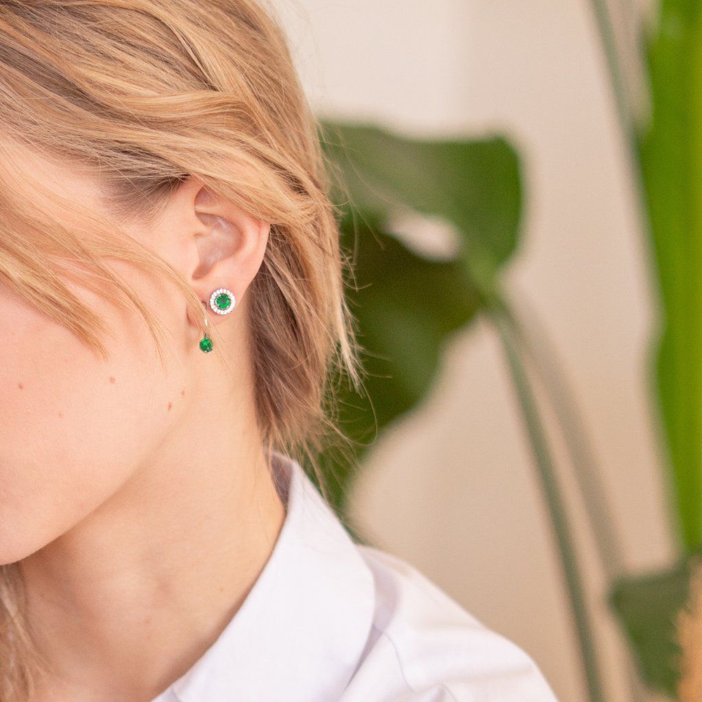 Tieto elegantné náušnice z chirurgickej ocele zaujmú na prvý pohľad svojím sýto zeleným kameňom, ktorý je zasadený do jemného kruhu z trblietavých zirkónov. Precízne spracovanie dodáva šperku luxusný vzhľad, vďaka ktorému sa hodí ako na každodenné nosenie, tak aj na slávnostné príležitosti.