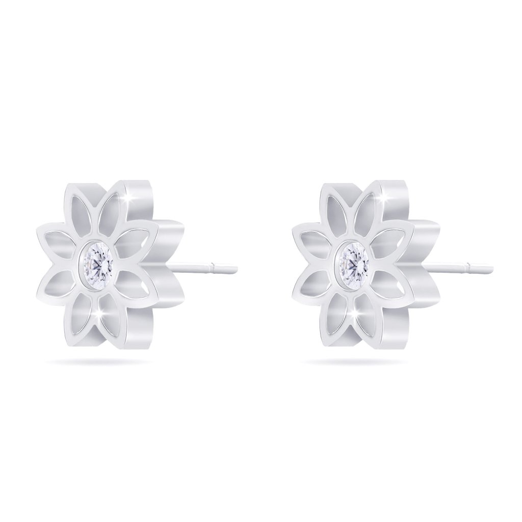 - Náušnice z chirurgickej ocele, puzetky v tvare kvetiny s čírym zirkónom.