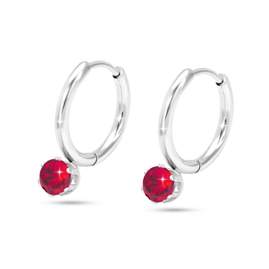 Náušnice z chirurgickej ocele kruh, ozdobené tmavočerveným zirkónom 1002621-2