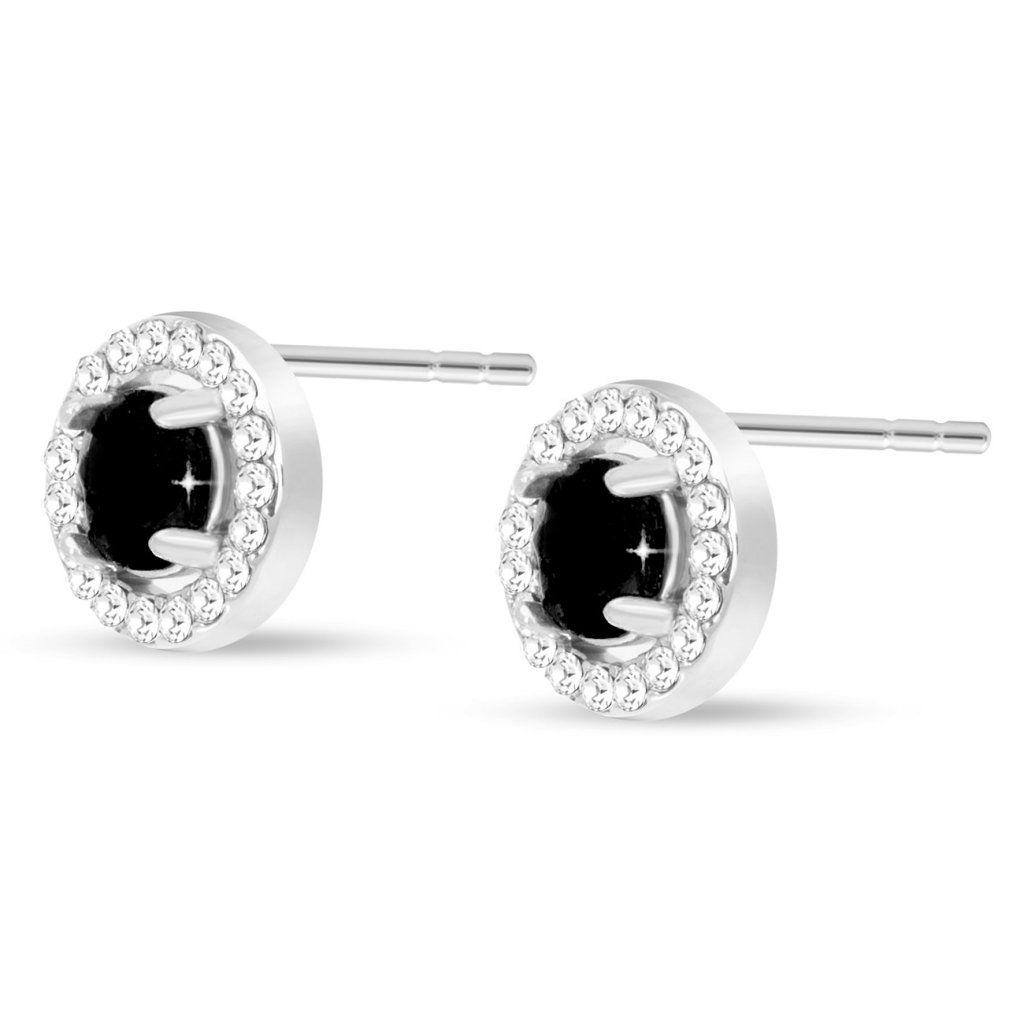 Okrúhle náušnice s čiernym zirkónom 2620-2
