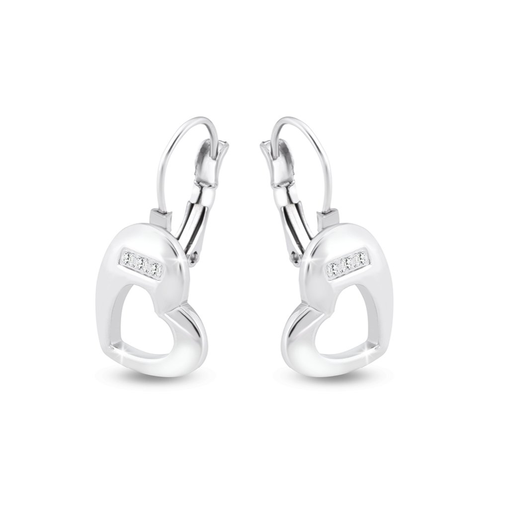 vysoko kvalitné náušnice z nehrdzavejúcej ocele v tvare srdca je vhodný pre každodenné nosenie. Zopájanie sú pohľady lesklé a zdobené tromi zirkónmi.Môžu otvoriť, zapnúť sa.