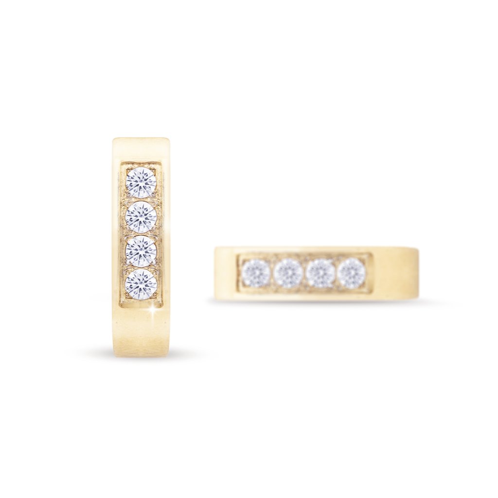 Tento model zaujme elegantným obdĺžnikovým tvarom s výraznou zlatistou farbou a decentnými kamienkami vsadenými v jednej línii. Vďaka kompaktnému rozmeru sú vhodné na každodenné nosenie aj slávnostné príležitosti. Praktické klapkové zapínanie zaisťuje pohodlie a bezpečné upevnenie.