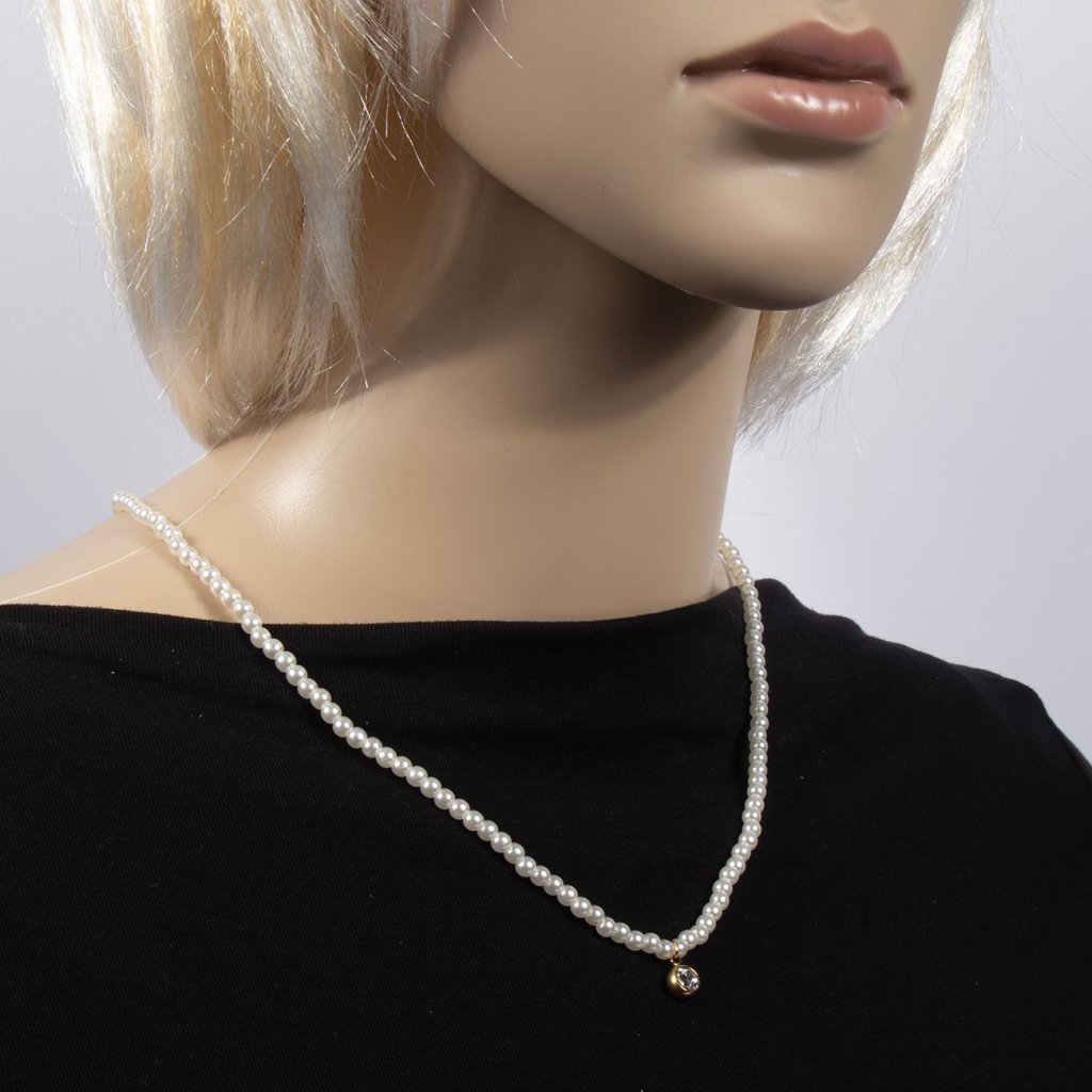 Perličková retiazka z chirurgickej ocele s pozláteným zirkónom 3002063