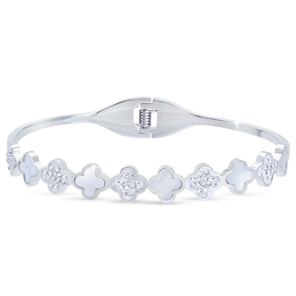 Pevný náramok z chirurgickej ocele s malými štvorlístkami 3022