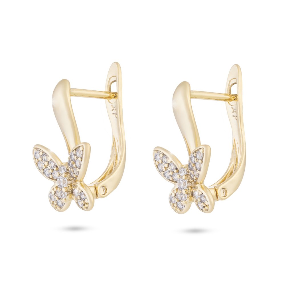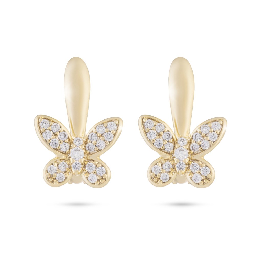 Pozlátené náušnice 14k, jemný motýlik ozdobený zirkónmi 1002443