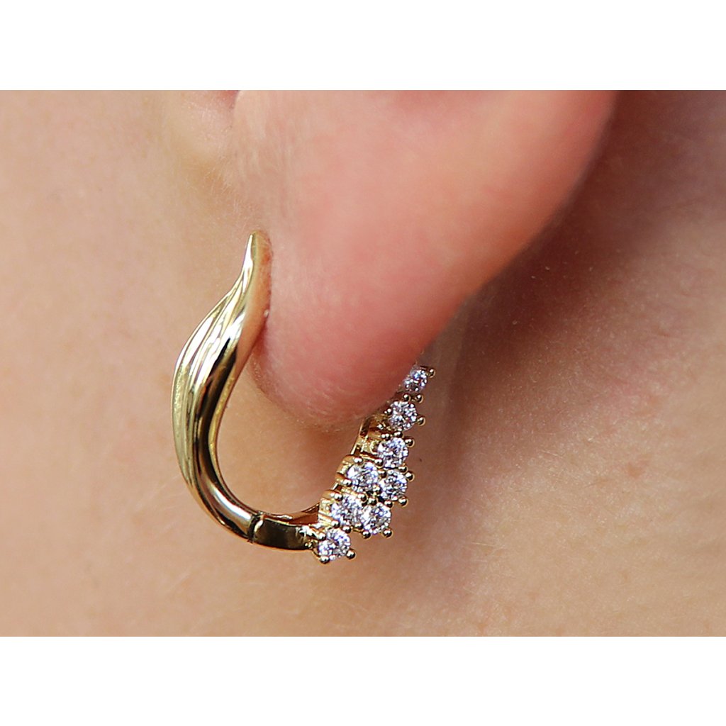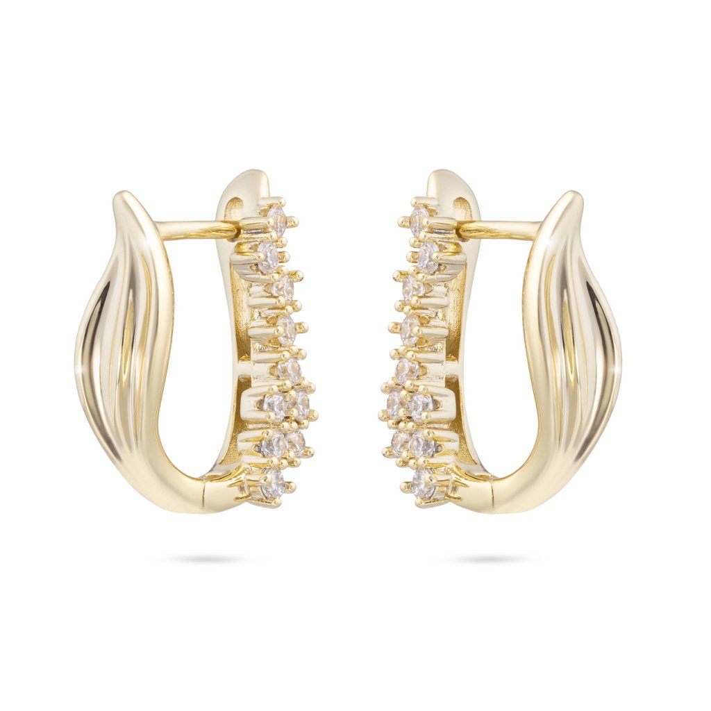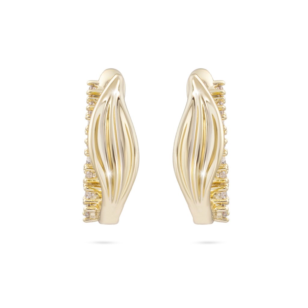 - Pozlátené náušnice 14K, lesklý lístok so zirkónovými kamienkami.