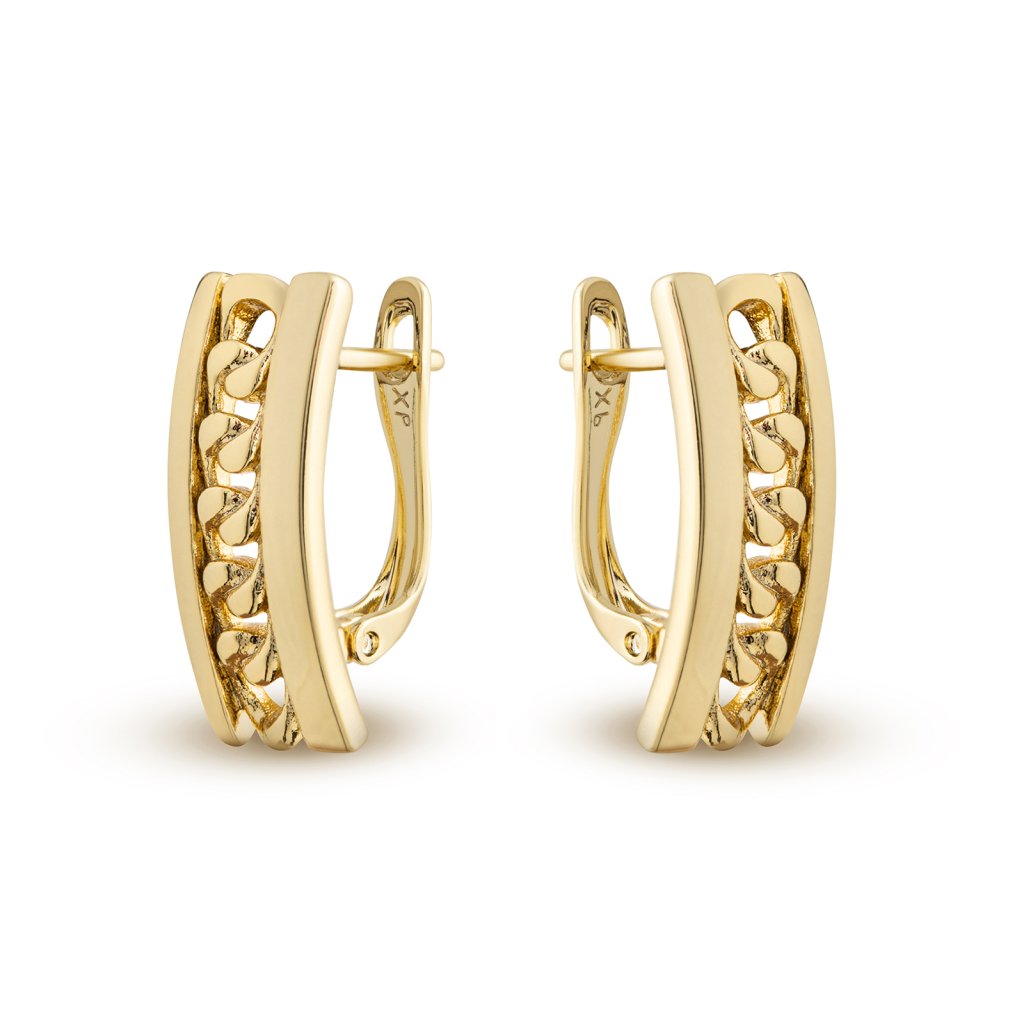 Pozlátené náušnice 14k, lesklý ovál s ozdobnou retiazkou 1002903