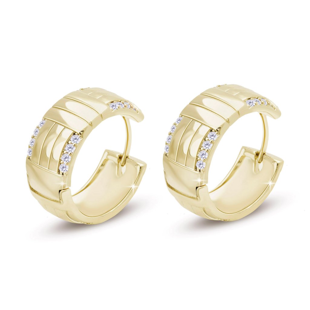 Pozlátené náušnice 14K krúžok, ozdobený prierezmi a zirkónmi 1002695