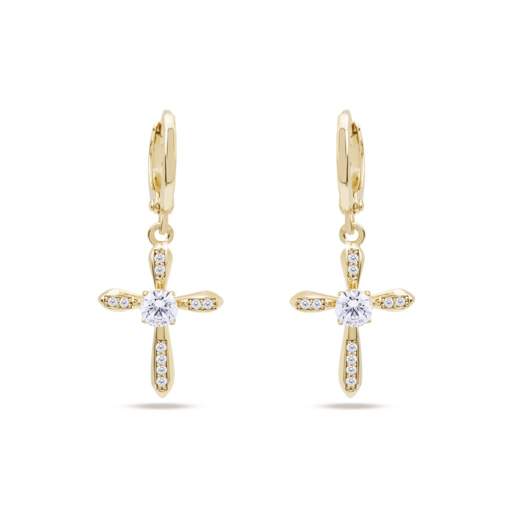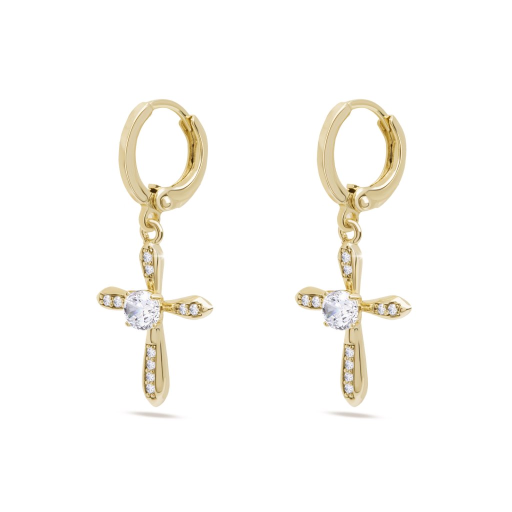 - Pozlátené náušnice 14k krúžok, visiaci krížik ozdobený zirkónmi.