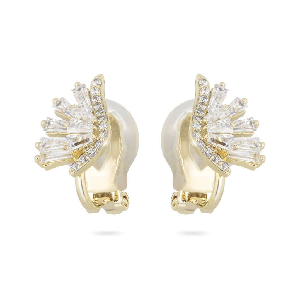 Pozlátené náušnice klipsy 14k, anjelské krídla ozdobené zirkónmi 1002653