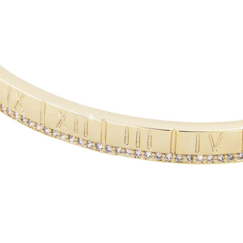 - Pozlátený náramok 14k pevný, rímske číslice so zirkónmi.