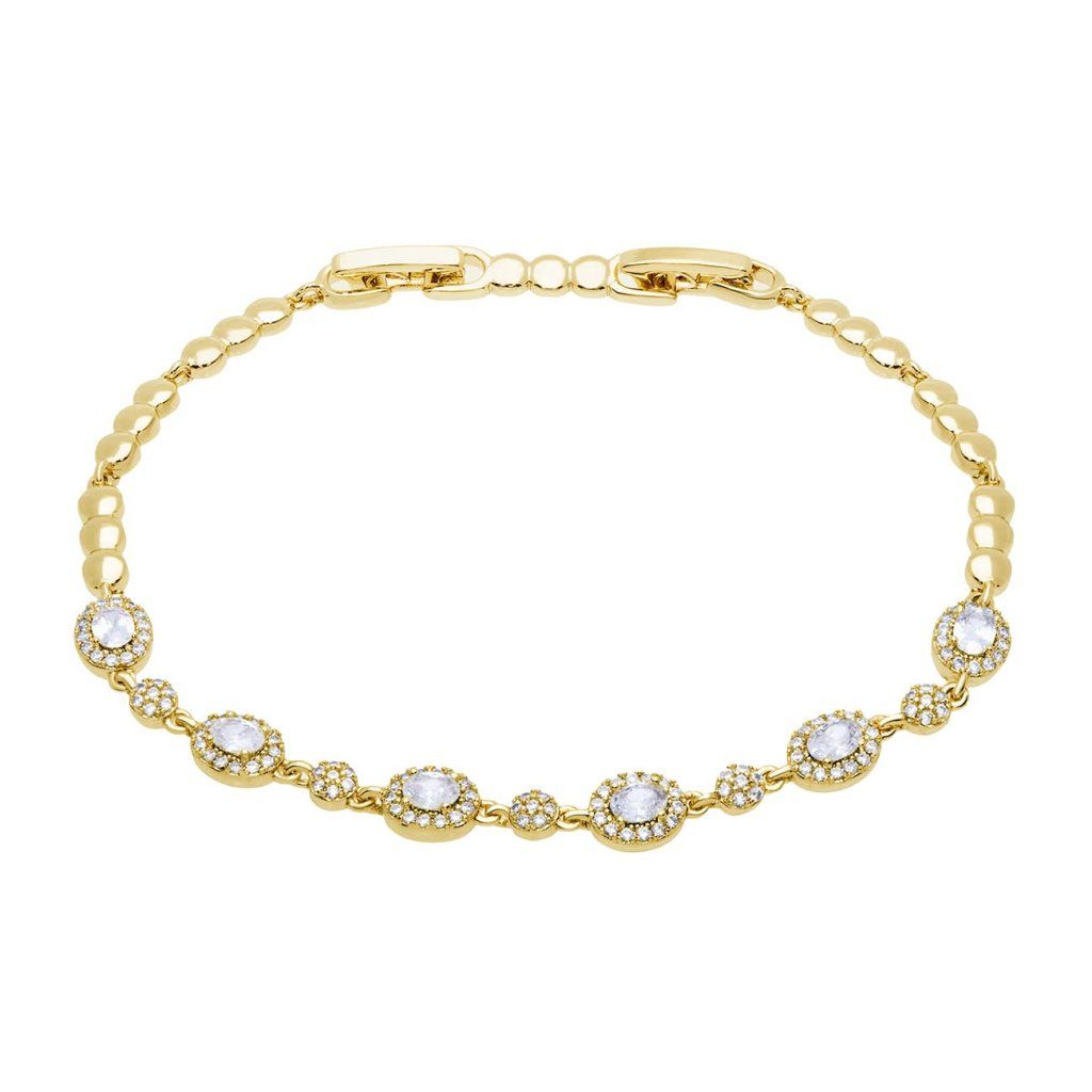 - Predstavujeme vám 14-karátový pozlátený náramok s motívom zirkónov - jemný a elegantný dizajn, ktorý dodá sofistikovanosť každému outfitu. Tento úžasný náramok je pokovovaný 14-karátovým zlatom pre extra luxusný lesk. Je vybavený krásnym pleteným motívom, je ideálny pre tých , Ktorí chcú svojmu vzhľadu dodať niečo mimoriadne a jedinečné. Je tiež vybavená klasickou sponou a nadstavcom. Či už ho budete nosiť každý deň, alebo si ho schováte len pre zvláštnu príležitosť, tento zlatý kúsok sa o to postaráte, aby ste oslnili, nech už pôjdete kamkoľvek!