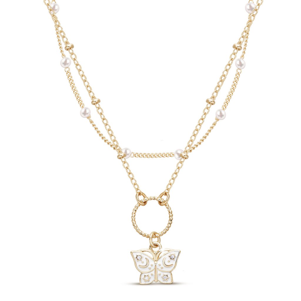 Pozlátená dvojitá retiazka 14k s príveskom, motýľ a perličky 3002146