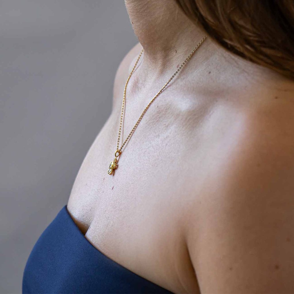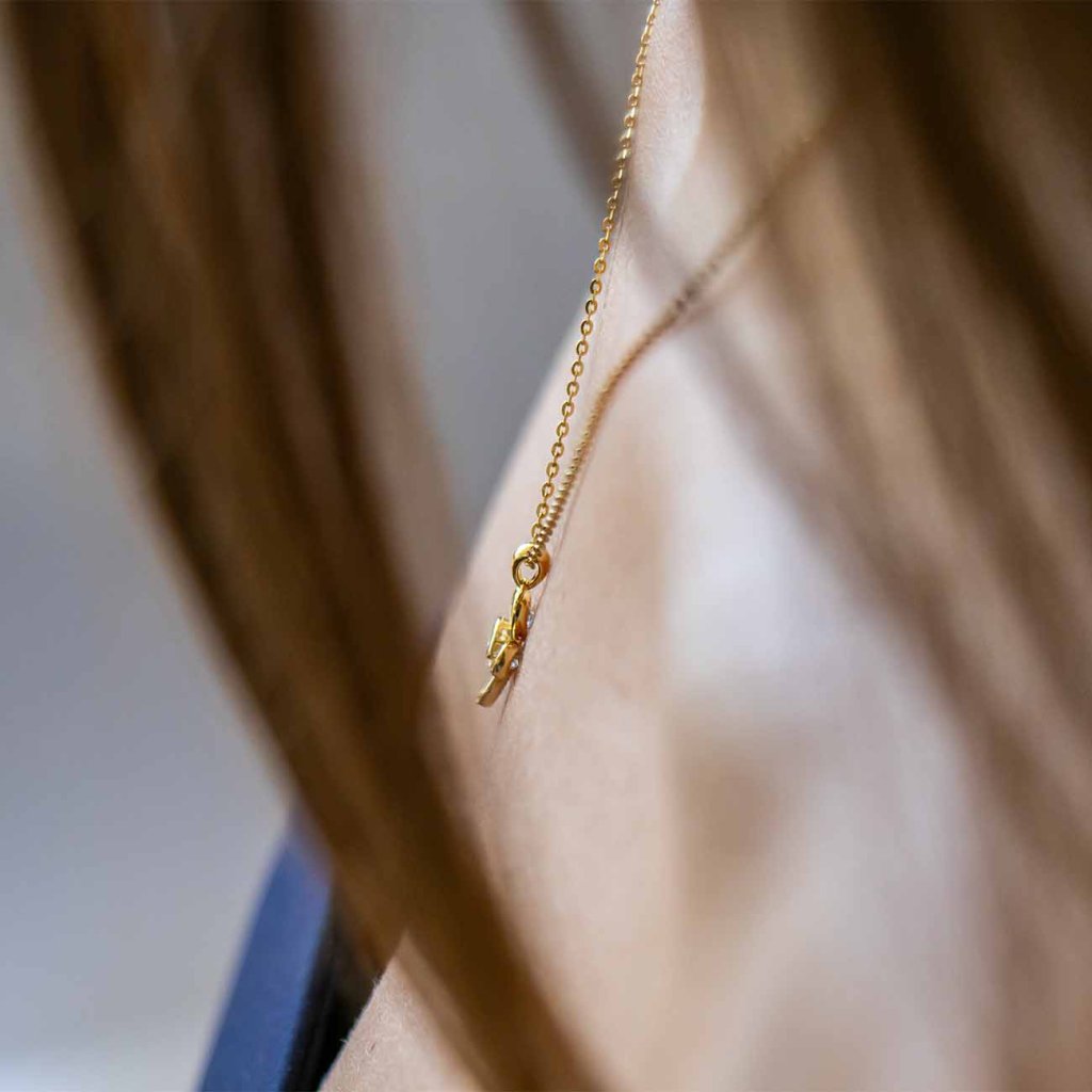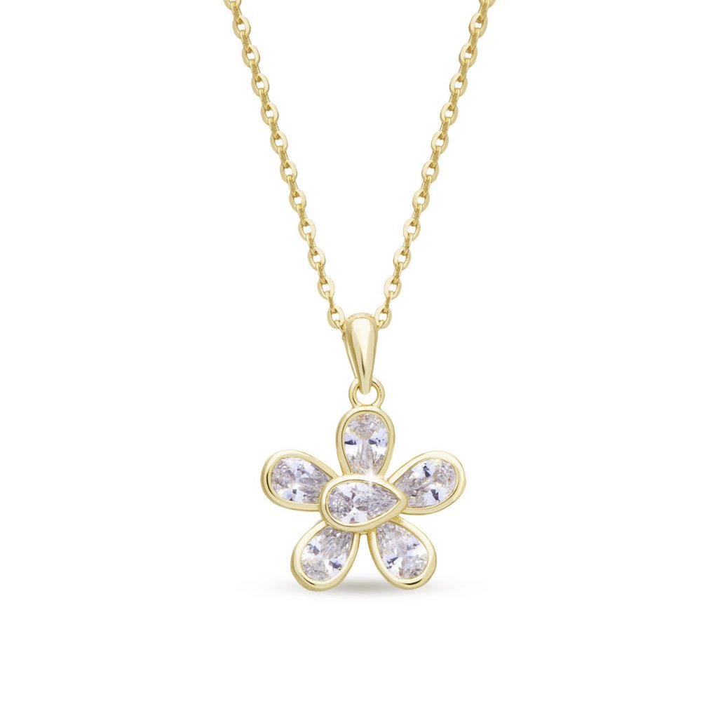 Pozlátená retiazka 14k zlatom s kvetinovým príveskom osadeným bielymi zirkónmi.