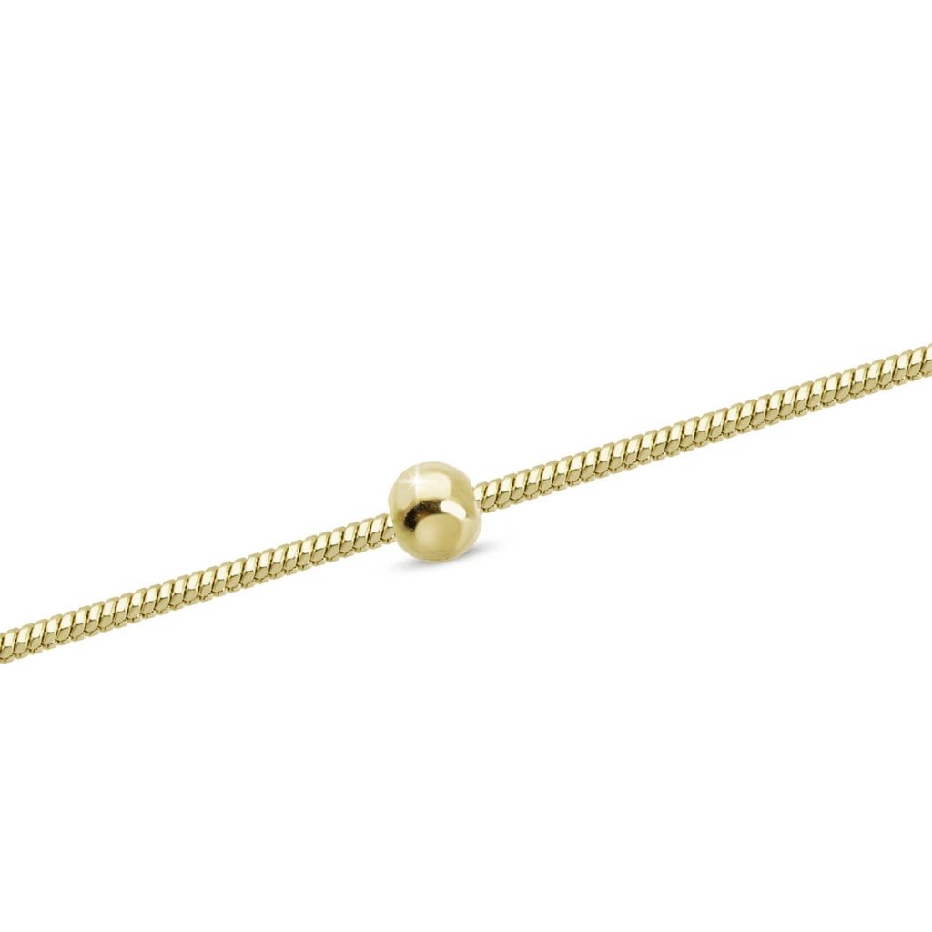 Minimalistická retiazka s jemným hadím vzorom je doplnená niekoľkými zlatými guličkami, ktoré jej dodávajú jemný detail a decentnú eleganciu. Výborne sa hodí na vrstvenie s ďalšími šperkami, ale vynikne aj samostatne vďaka svojmu lesku a hladkému prevedeniu.