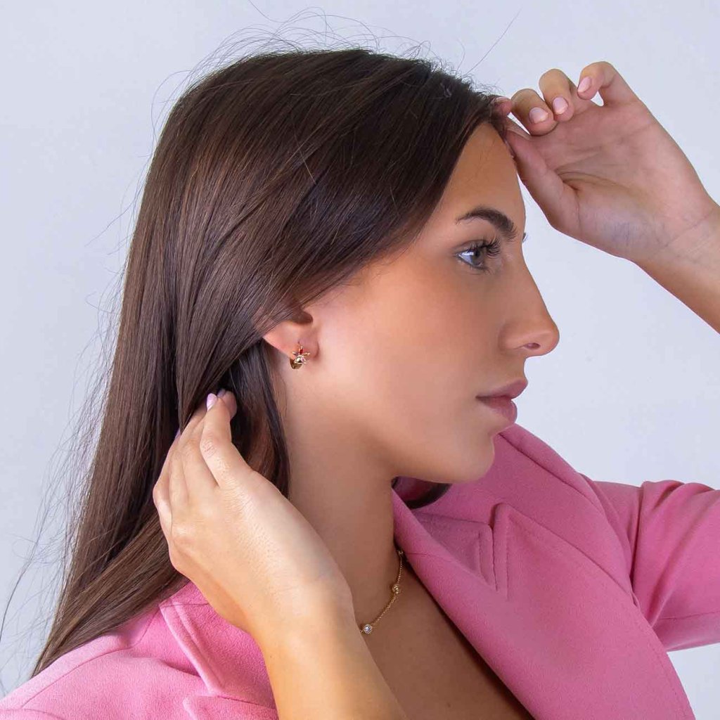 Pozlátené kruhové náušnice s kvetom z farebných zirkónov 3802