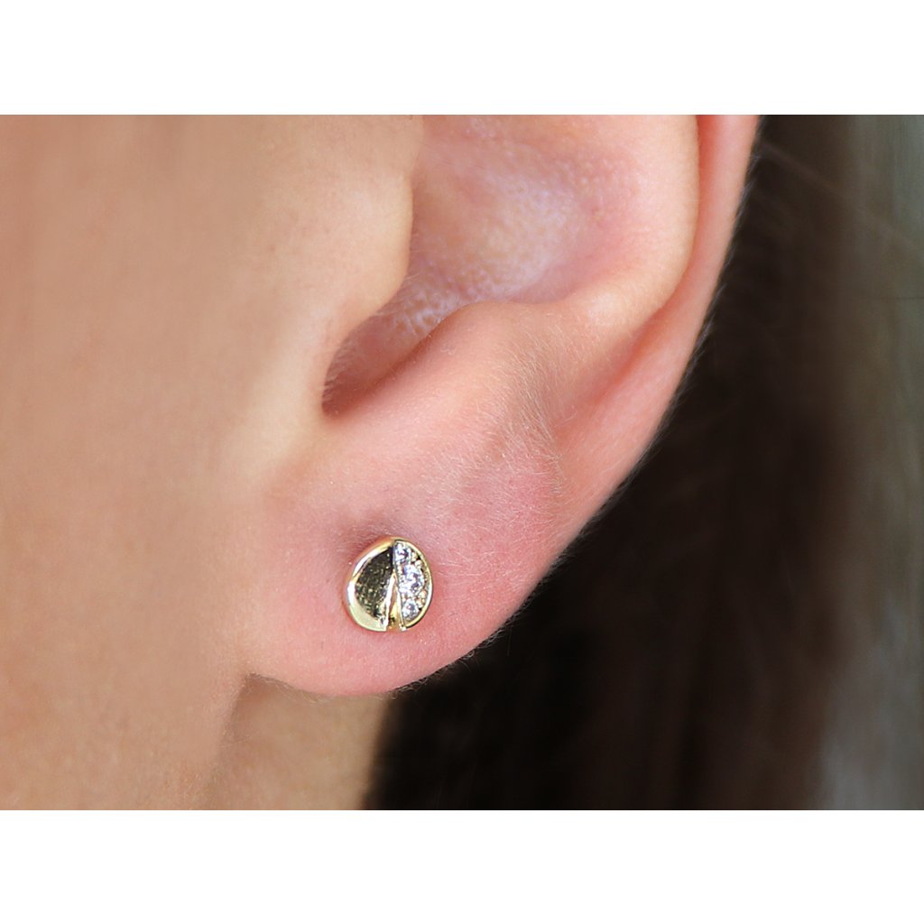 Pozlátené náušnice 14k, drobné kôstky v tvare, pokrúteného kolieska so zirkónmi 1002375