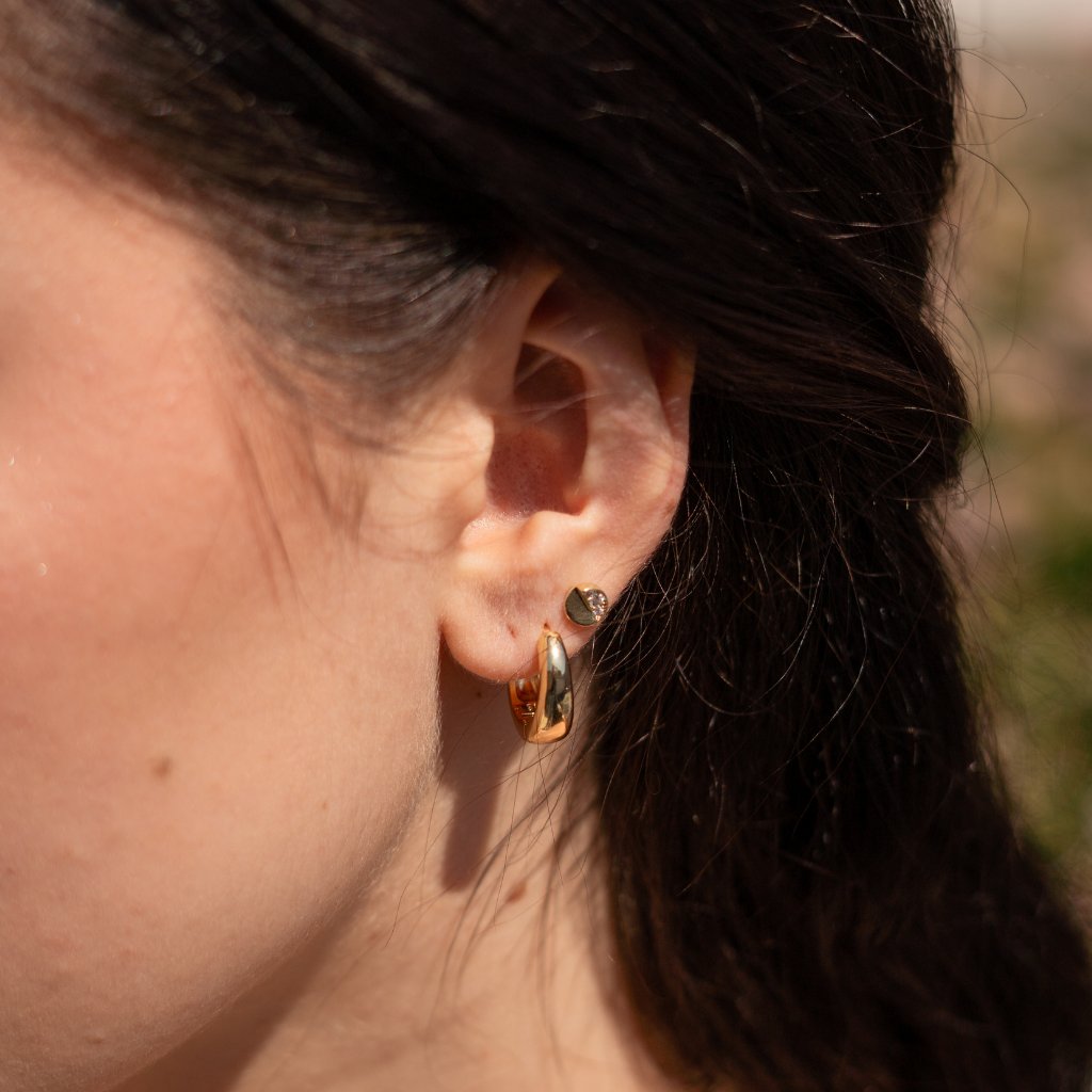 Pozlátené náušnice 14k, puzetky v tvare pokrúteného kolieska so zirkónmi. Veľmi kvalitné spracovanie.