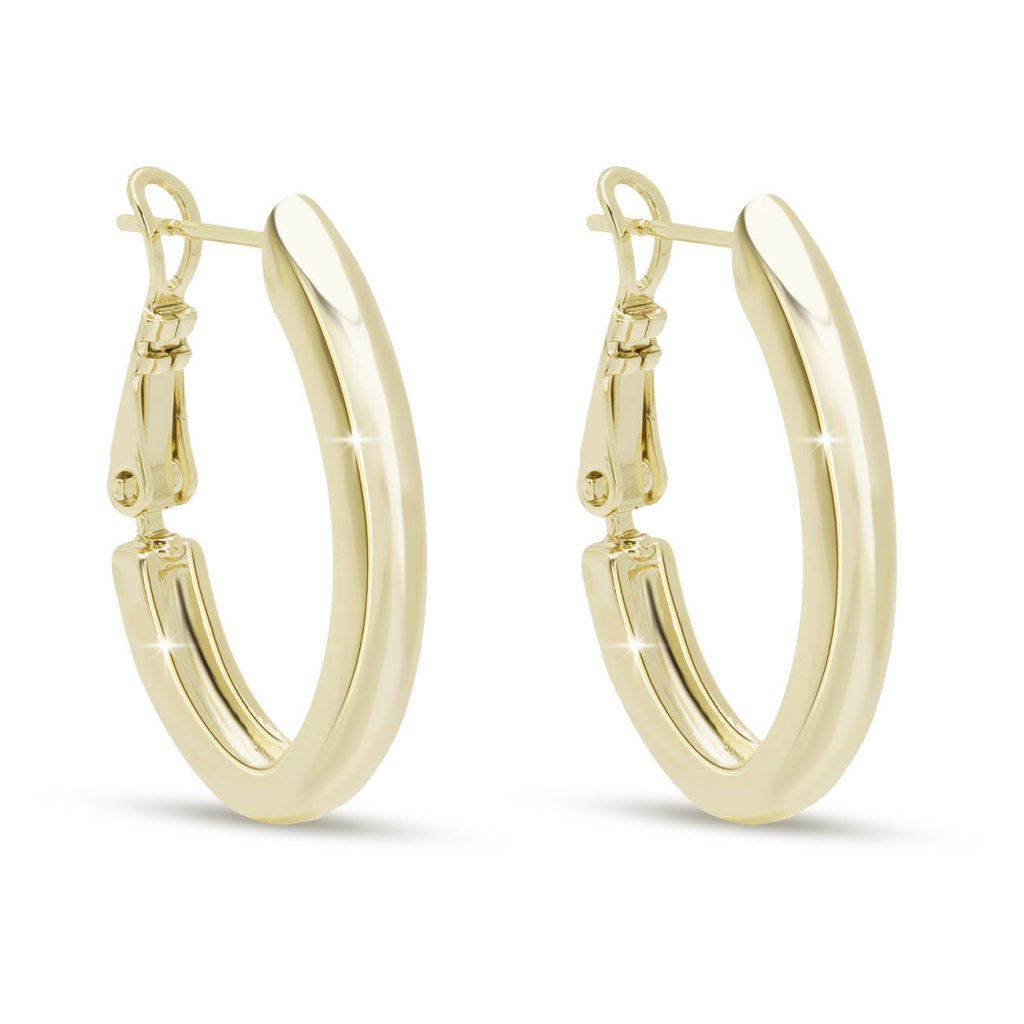 Jemné náušnice pozlátené 14 karátovým zlatom. Krásne lesklé ovály bez dekorácie. Tieto náušnice jemne doplnia akýkoľvek outfit bez toho, aby prekrývali ostatné módne doplnky. Navyše v nich budete vždy vyzerať jemne a upravene. Sú vhodné na rôzne oslavy a špeciálne príležitosti, ako aj na každodenné nosenie. Tento výrobok neobsahuje ťažké kovy.