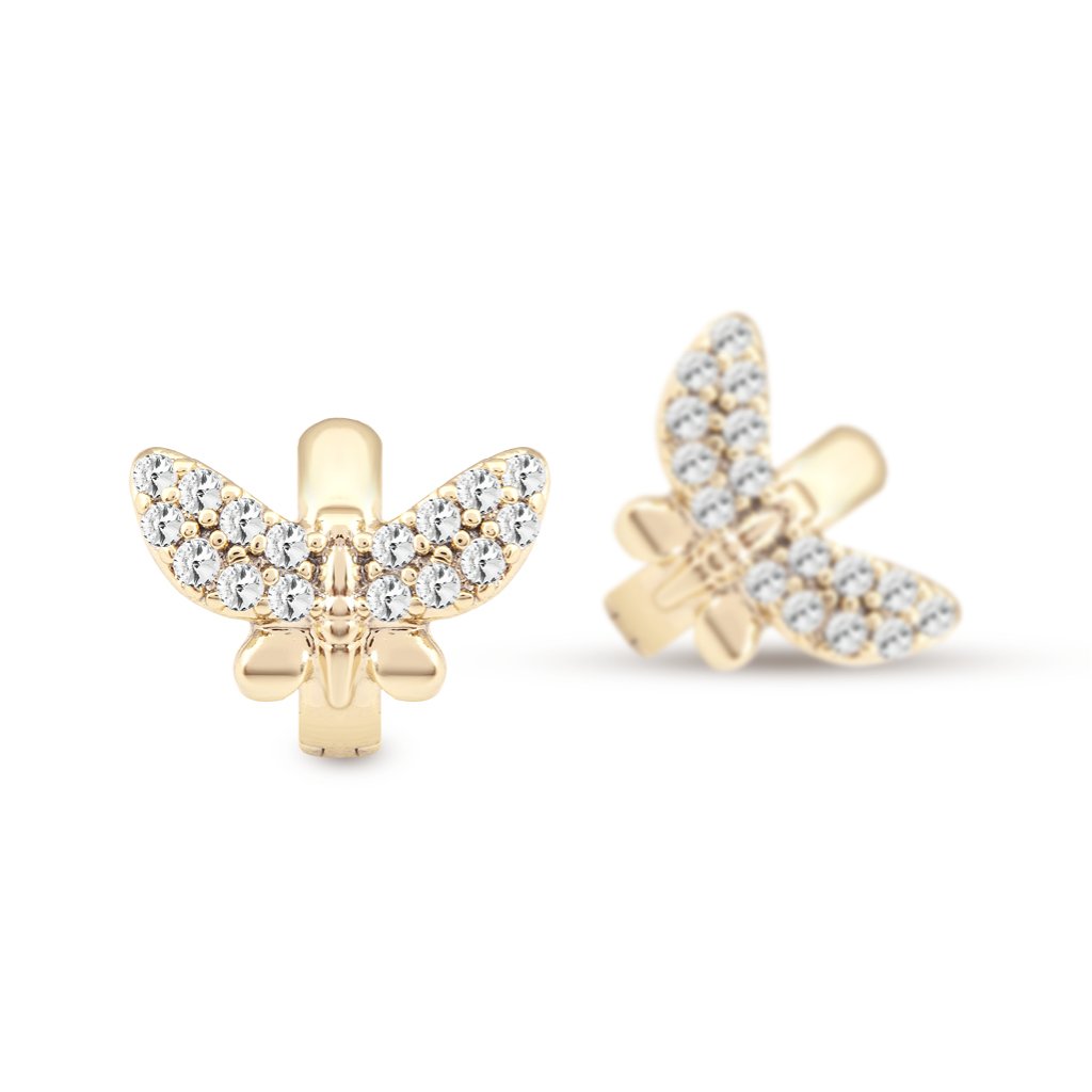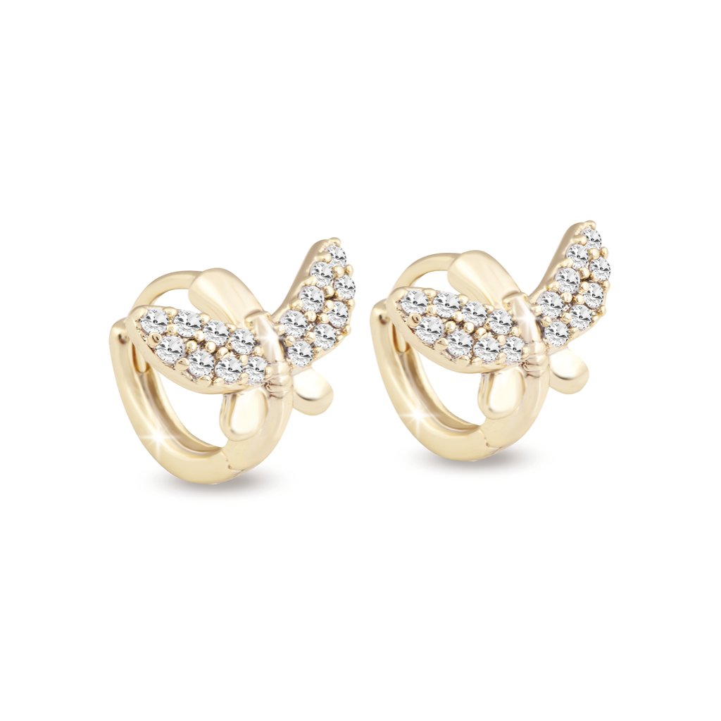Veľmi zaujímavé módne dámske náušnice kruhové, pozlátené 14k zlatom, motýľ so zirkónmi. Vysoký lesk dodá eleganciu každému oblečeniu.