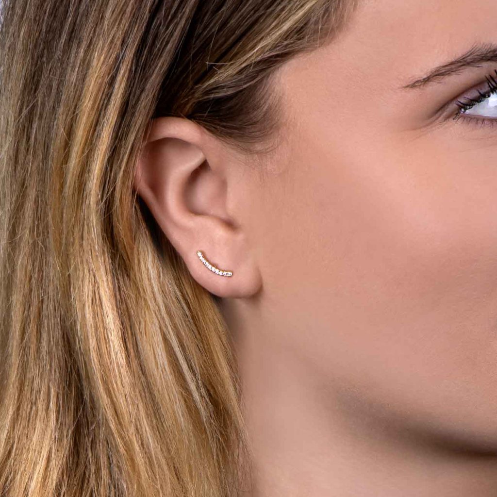 Pozlátené náušnice 14k, prehnuté so zirkónmi, 1003417