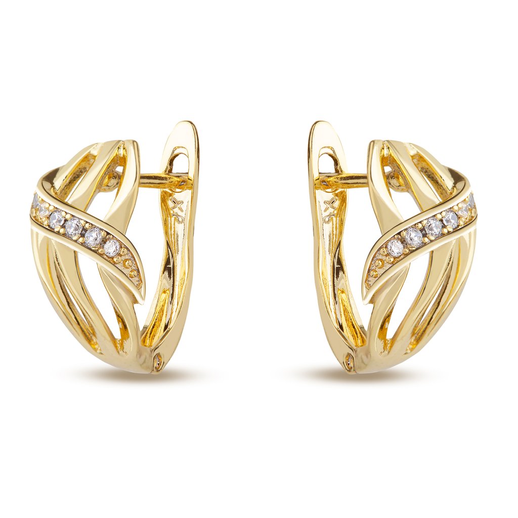 Pozlátené náušnice 14k zvlnené oválky ozdobené zirkónmi. Veľmi kvalitné spracovanie. Ruský patentový.