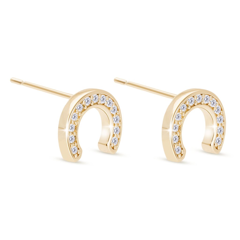 14k pozlátené náušnice. Decentné jemné podkovy zdobené čírymi zirkónmi.