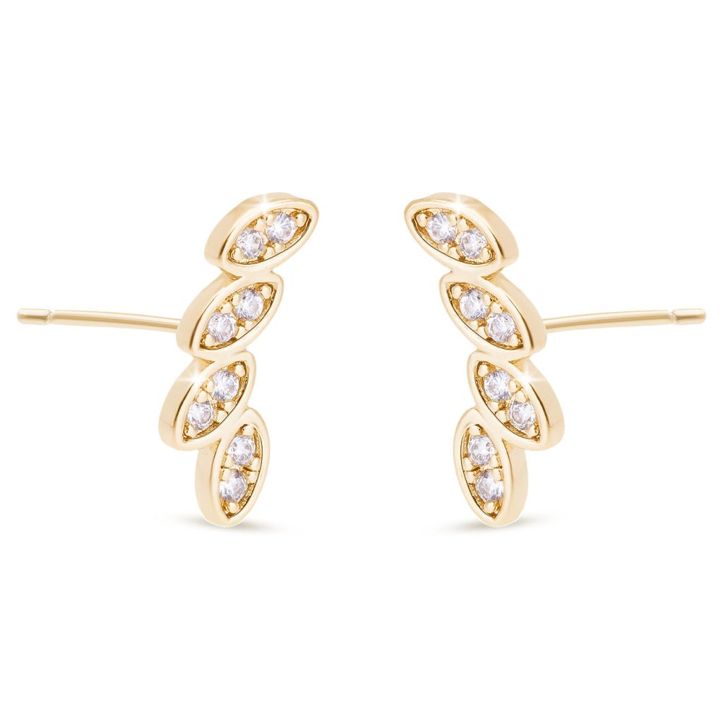 Pozlátené náušnice zo 14-karátového zlata - puzetky v tvare malých zrniečok, vykladané čírymi zirkónmi.