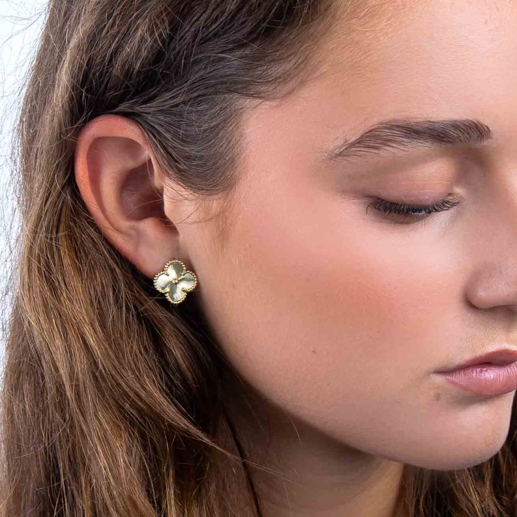DUBAI 3677 Náušnice štvorlístky s reliéfom