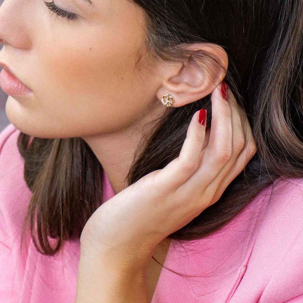 Pozlátené náušnice v tvare štvorlístkov so zirkónmi 3824