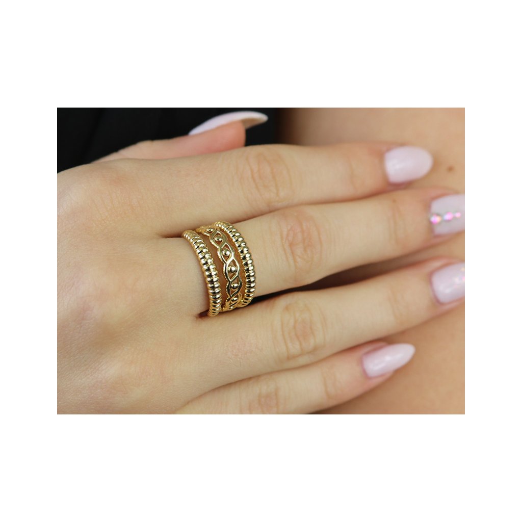 - Pozlátený dámsky prsteň 14k zlatom, masívny s ozdobnými prierezmi.