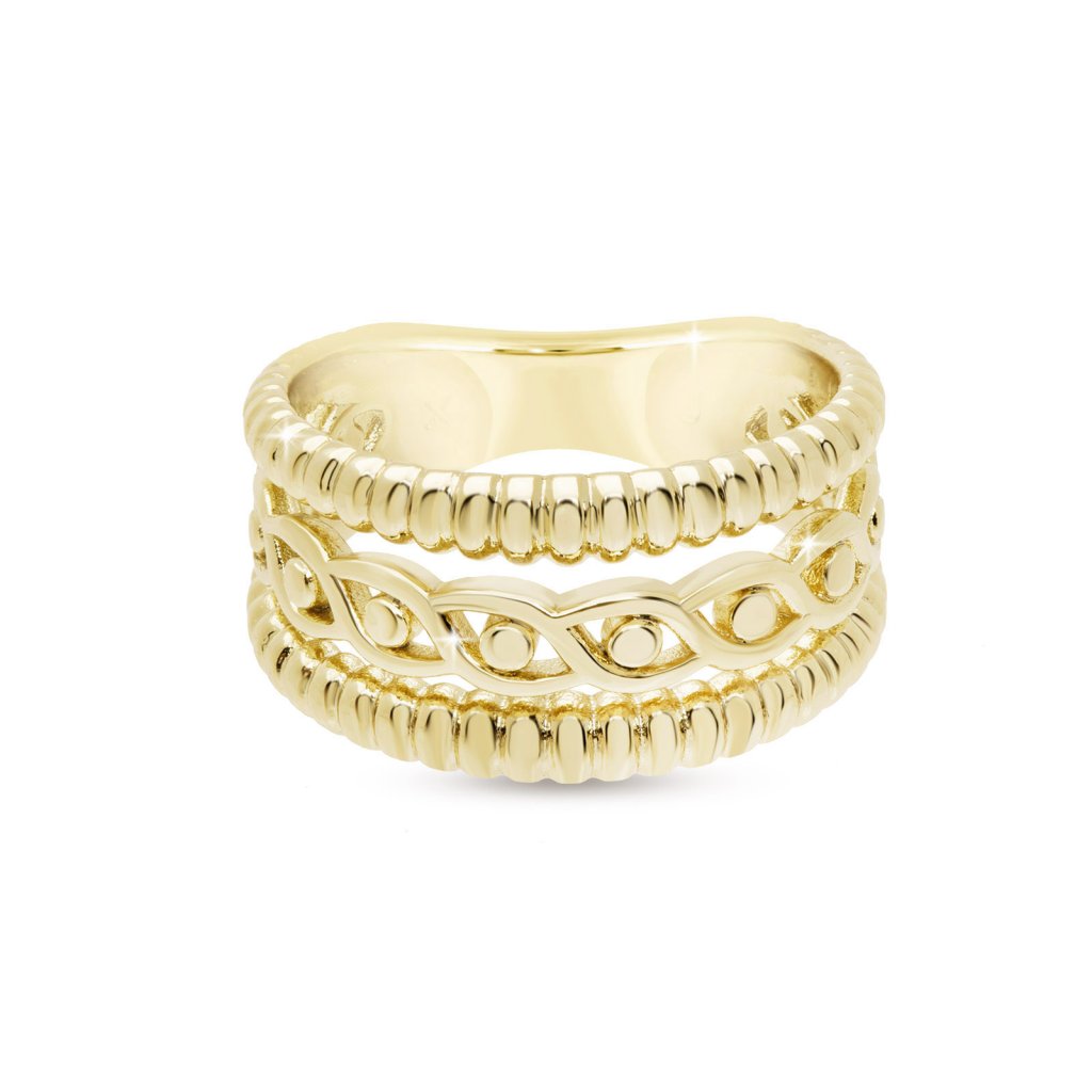 - Predstavujeme vám pozlátený dámsky prsteň s ozdobnými prierezmi – úžasný šperk hodný každej ženy. Povrchová úprava 14-karátového zlata a pre veľký lesk a žiarivosť. Noste ho samostatne, alebo ho môžete vrstviť s ďalšími kúskami, aby ste dodali svojmu vzhľadu pôsobivosť! Masívna veľkosť vám umožní ukázať jeho skutočnú krásu pri zachovaní maximálneho pohodlia a jednoduchého nosenia vďaka konštrukcii z antialergického materiálu. Dodajte svojmu šatníku nadčasový štýl a triedu ešte dnes s týmto klasickým dámskym prsteňom.