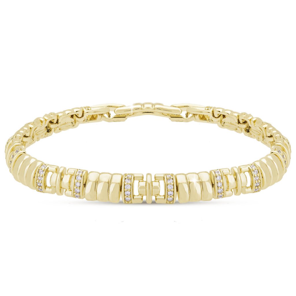 - Predstavujeme vám 14-karátový pozlátený náramok s motívom obdĺžnikov a kríža. Náramok je zdobený drobnými čírymi zirkónmi. Má elegantný dizajn, ktorý dodá každému oblečeniu sofistikovanosť. Tento úžasný náramok je pokovovaný 14-karátovým zlatom pre extra luxusný lesk. Vybaven rozširujúcim zapínam. Či už ho budete nosiť každý deň, alebo si ho schováte len pre zvláštnu príležitosť, tento zlatý kúsok sa o to postaráte, aby ste oslnili, nech už pôjdete kamkoľvek!