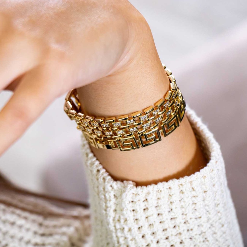 DUBAI 3047 Pozlátený náramok s gréckym vzorom a čírymi zirkónmi